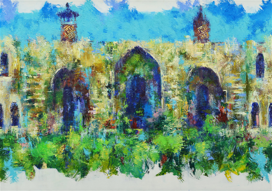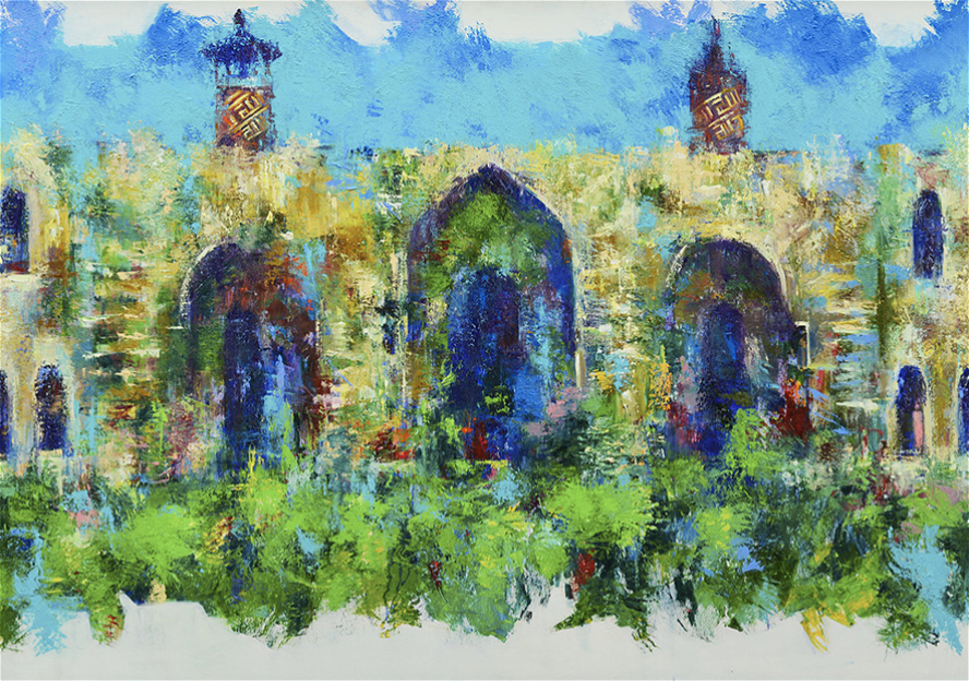 Müəllifin fırçası məscidi təkcə statik yadigarı deyil, həm də regionun ruhunun canlı abidəsi, bir şahid tək keçmişin əks-sədalarının indiki zamanla qovuşduğu məkan kimi əks etdirir.